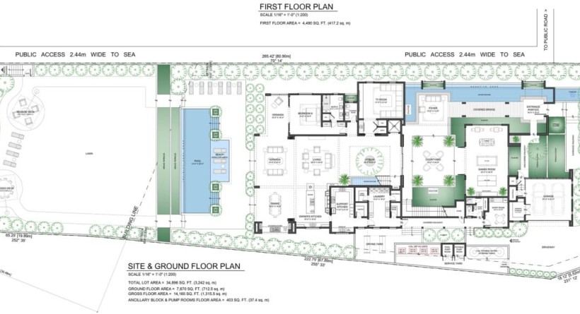 • Over 14,000 sq. ft. of total living space across 3 levels• 7 bedrooms, all en-suite + spa, gym, games room & rooftop pool• Architectural drawings already prepared by Michael Gomes• Interior design recommendations by Monique Archer of Archer’s Hall• Elevator lift to all floors• Elegant open-plan layouts & water features that define island luxury