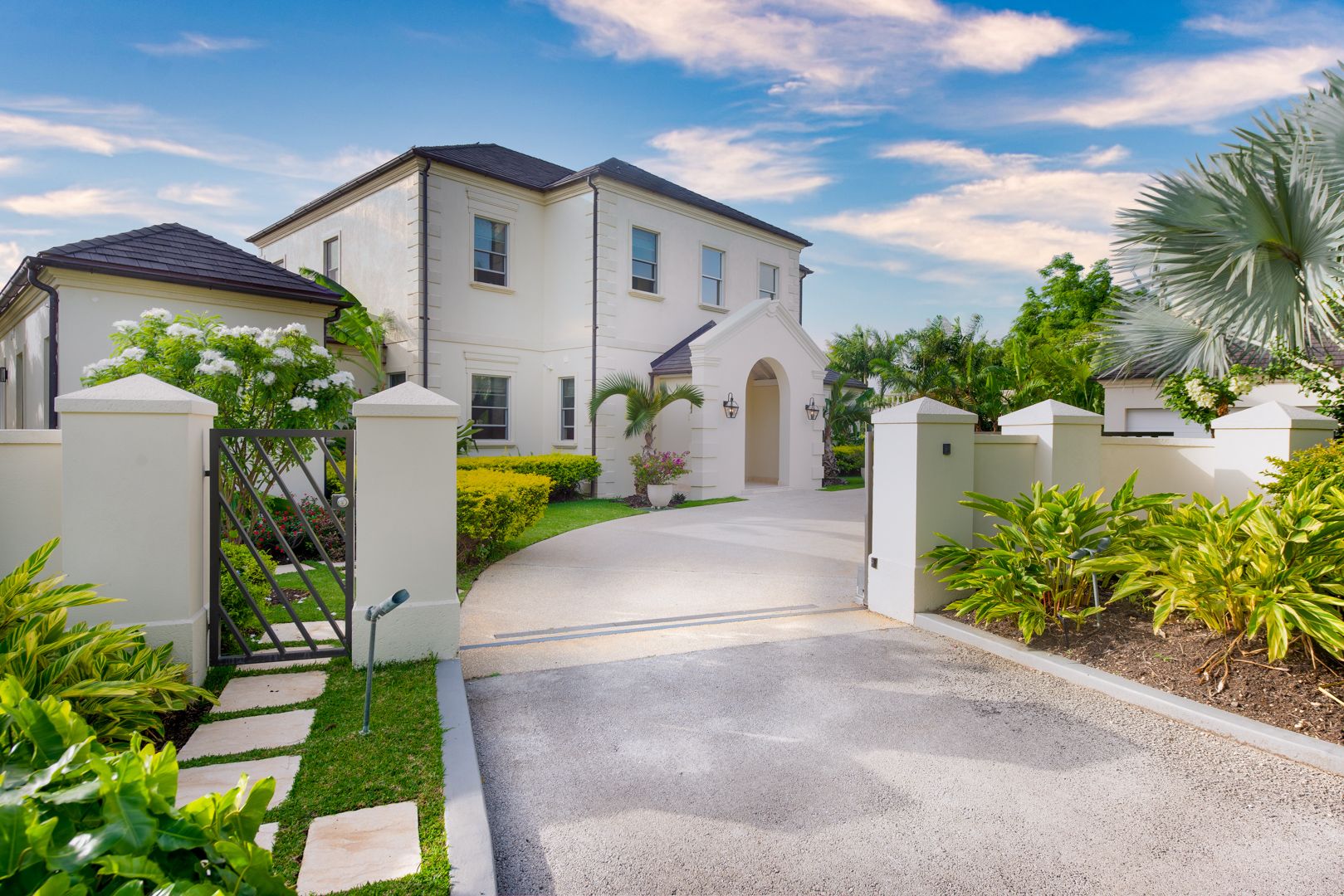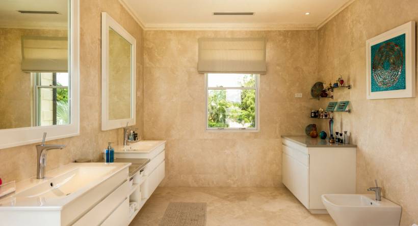 Palm Grove is a beautifully designed villa situated within the Royal Westmoreland gold estate on the West coast of the island. Driving through a sweeping in/out entrance with electronic gates, large garage for 2 cars, car port and ample storage with a Hormann electric garage door and a fully landscaped garden area. Once entering the villa the views overlooking the 11th fairway of the golf course with elevated tropical views, and in a quiet neighborhood on the estate are breathtaking.