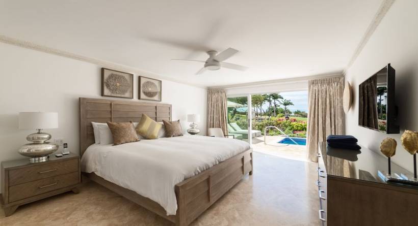 On the ground floor, there is a master suite with a luxury en-suite bathroom and also a large sitting area which opens to the beautifully manicured gardens where you can enjoy the greenery and relax island style. The floor to ceiling sliding glass doors create an abundance of light and views that welcome you onto the pool and terrace area.