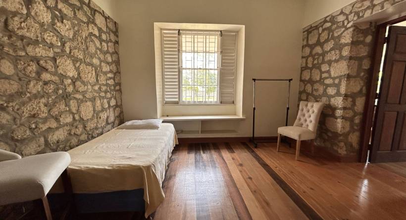 The outer walls were reinforced with a ring beam, and new a new roof has been installed on both the main house and the cottage. The windows and doors were replaced with custom-made hardwood designs, and the plumbing and electrical systems were entirely updated.