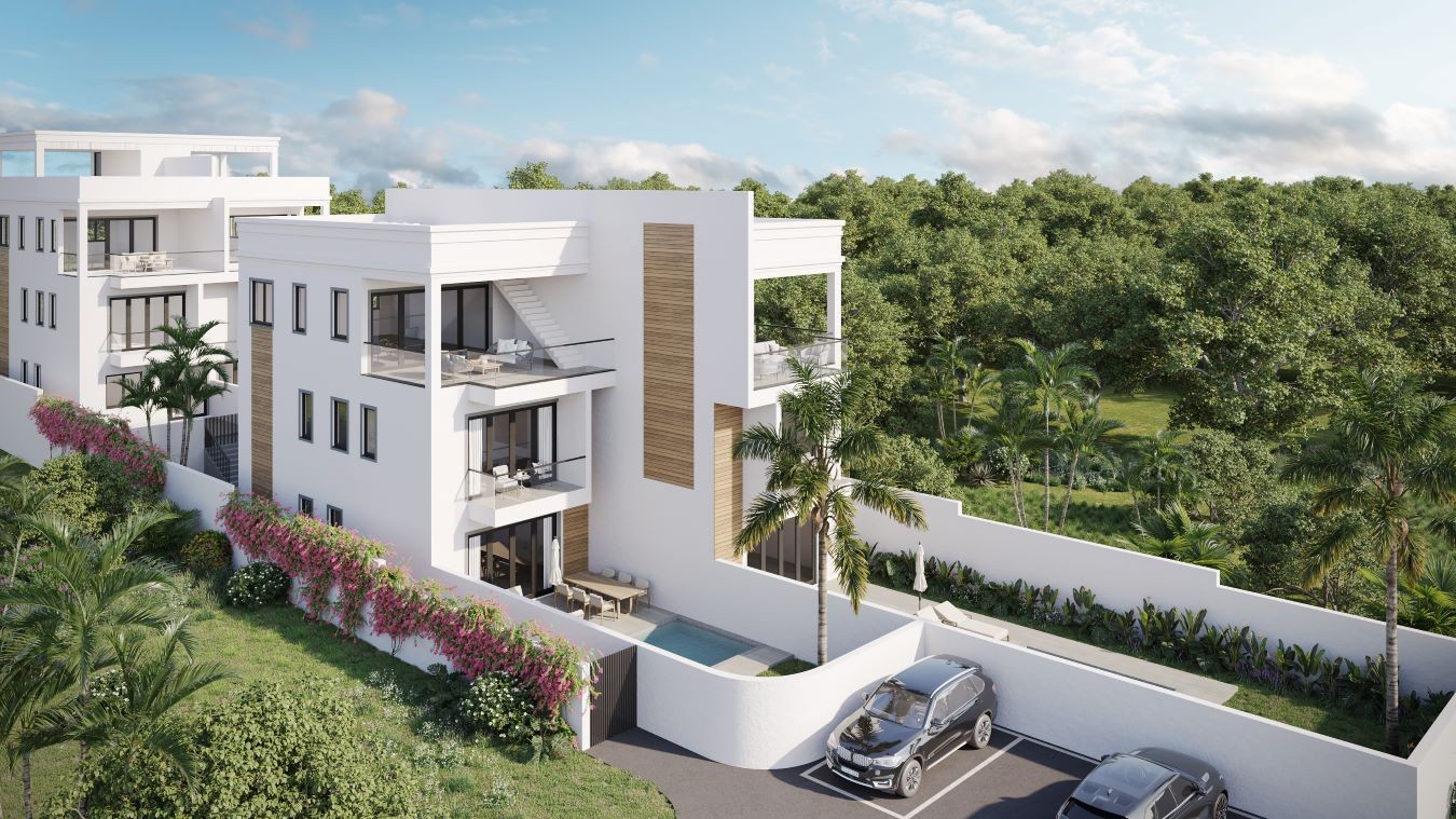 Each home spans over four floors (including the roof terrace), is generously scaled with open-plan interiors, spacious en-suite bedrooms, and seamless flow to outdoor living areas. Every residence boasts its own rooftop terrace with sparkling sea views and a private pool, perfect for morning coffee, sunset cocktails, or full-on holiday mode.