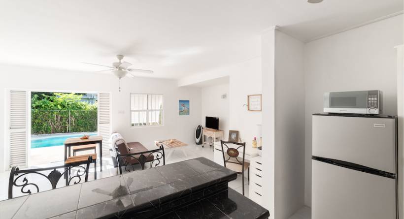 No. 72 Cherry Avenue, Sunset Crest is a one-level detached house, which has been divided into 2 units. Each unit has its own entrance. Unit 72 A has 2 bedrooms with an en suite bathroom off the master bedroom. There is a separate bathroom for the guest bedroom. It also has a sitting room with dining area and kitchen. Outside is an enclosed garden with a pool and pool deck. There is a bathroom outside by the pool deck. Unit 72B has 2 bedrooms, a sitting room with a dining area, a kitchen and one bathroom. Unit 72A & Unit 72B Cherry Avenue are regularly rented out for holiday rentals. They achieve a high occupancy rate with one unit being rented with use of the pool and the other without. An owner of 72 Cherry Avenue could use one of the units for themselves and rent out the other to achieve additional income. Properties in Sunset Crest are highly sought after. This is because they are close to the beach, all the amenities of Holetown and the main west coast supermarket. They are close to The Limegrove Lifestyle Centre where there is wonderful shopping. There is also an array of bars, cafes, and restaurants in Limegrove. Owners at Sunset Crest often join the beach club which is located next to The Beach House restaurant. The annual cost for membership is a relatively modest sum. At the beach club there is a pool which overlooks the sea for use of owners and their guests. Sun loungers and umbrellas are provided and there are bars and restaurants close by. There is also direct access to the turquoise waters of the Caribbean Sea from the beach club. This delightful property sits on a large plot of land. If desired, there is planning permission for the development of 4 apartments on the site.