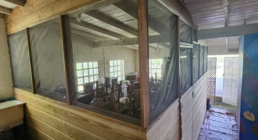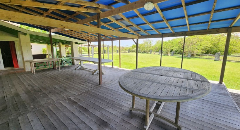 To the rear of the property are wooden decks which are perfect for entertaining. Previously, these areas served as spaces for an annual summer camp. Connected to the house and these decks are also additional restrooms and a kitchen facility.