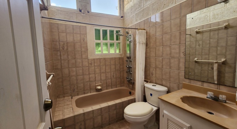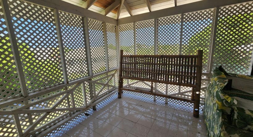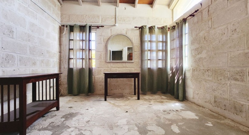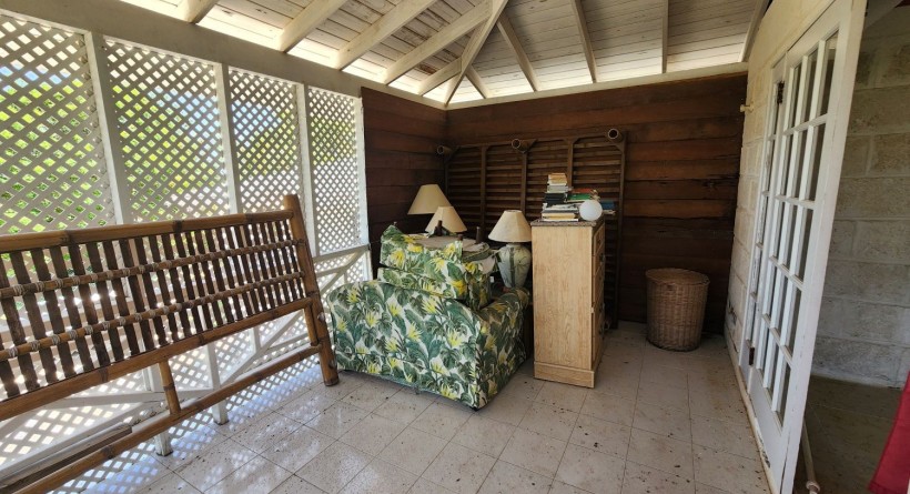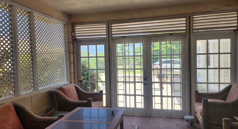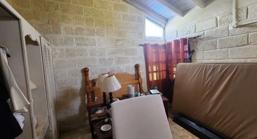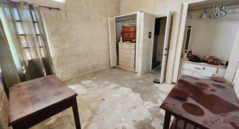 Towards the end of the hallway there is a full bathroom and the first bedroom, there is the adjoining second bedroom, which shares the bathroom with it. Overlooking the front of the property there is the primary suite, which is extremely spacious with its own covered patio. Note that this room would have to be retiled.