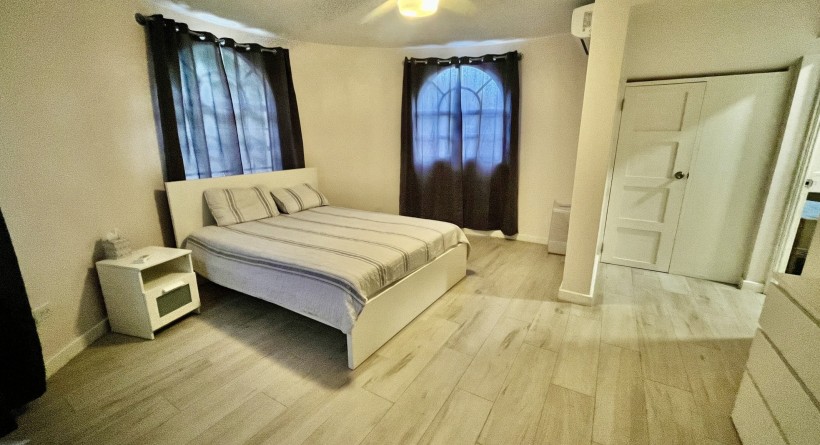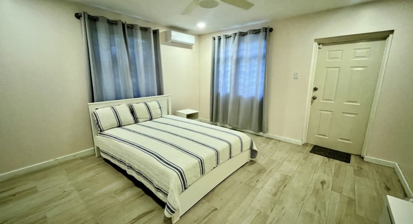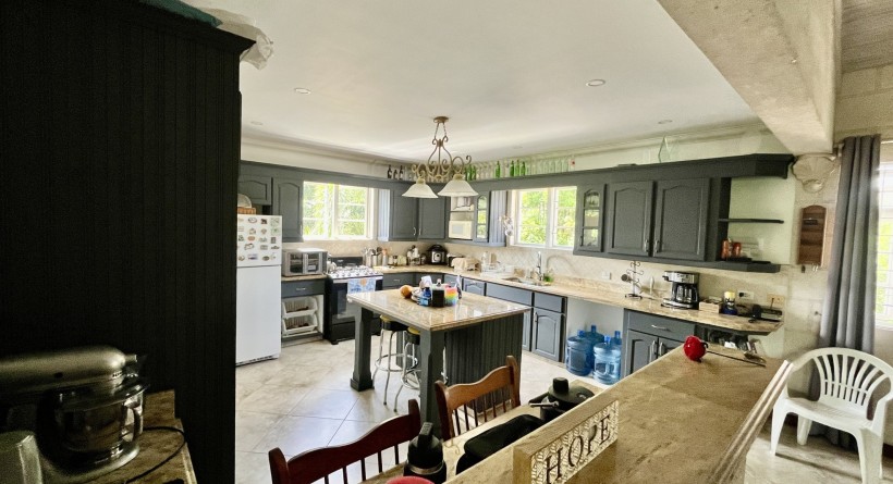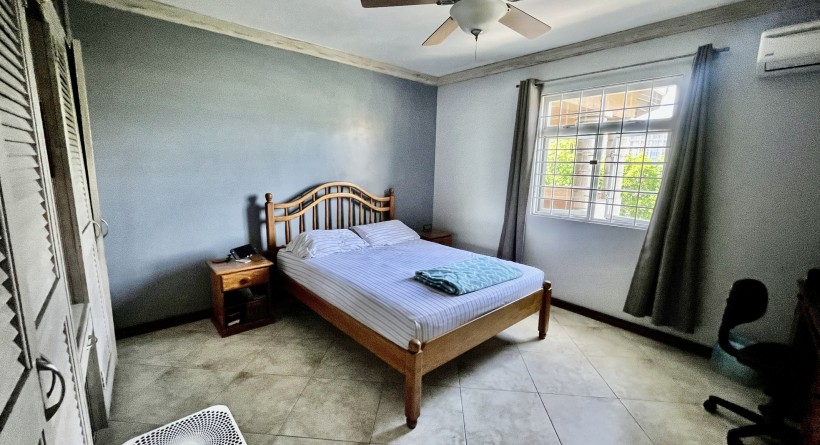 The kitchen is both stylish and practical, featuring granite countertops and generous cupboard storage, making it ideal for everyday family living. All bedrooms are fitted with air-conditioning and ceiling fans, ensuring comfort in Barbados’ tropical climate.