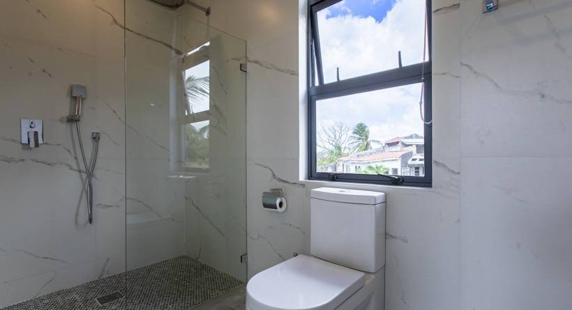 The concept of the villa is to offer an outside feeling while still being inside; with its bifold glass doors onto the pool area and sliding glass doors to the side of the property. This also allowing for cool breezes to flow through.