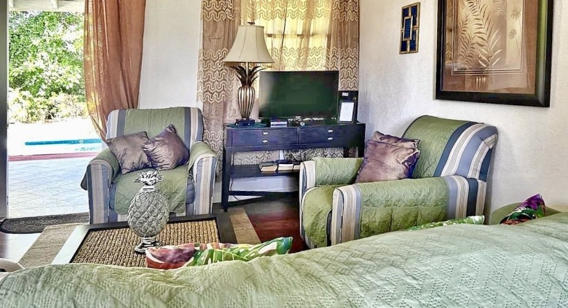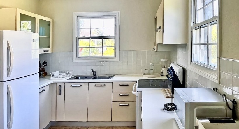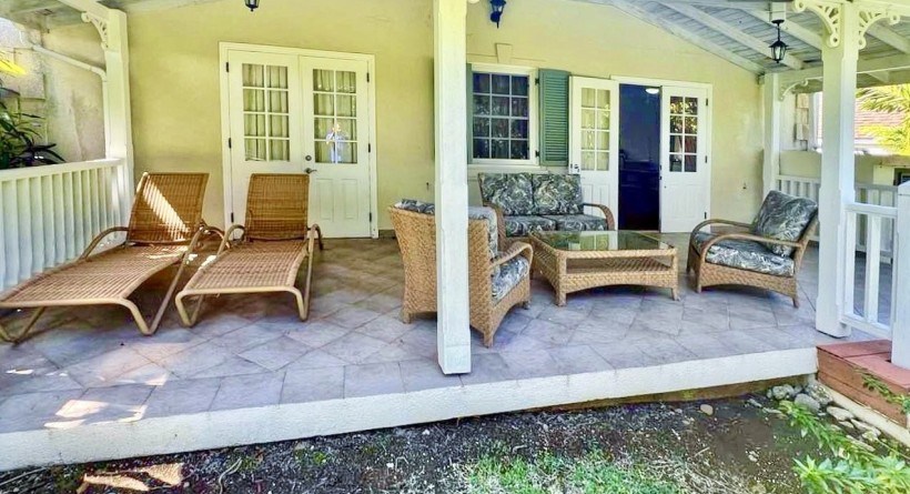 Inside, the home is designed around comfortable, open-plan living. The layout flows naturally between the fully equipped kitchen, living and dining areas, and a dedicated laundry—an appreciated practical feature for longer stays and residential use. Natural light and good proportions support an easy, airy feel throughout, while the home’s finishes and furnishings allow a buyer to move in with minimal effort. For comfort, the property includes ceiling fans throughout, air-conditioning in both bedrooms, and an electric water heater, ensuring the home performs well in Barbados’ climate in every season.
