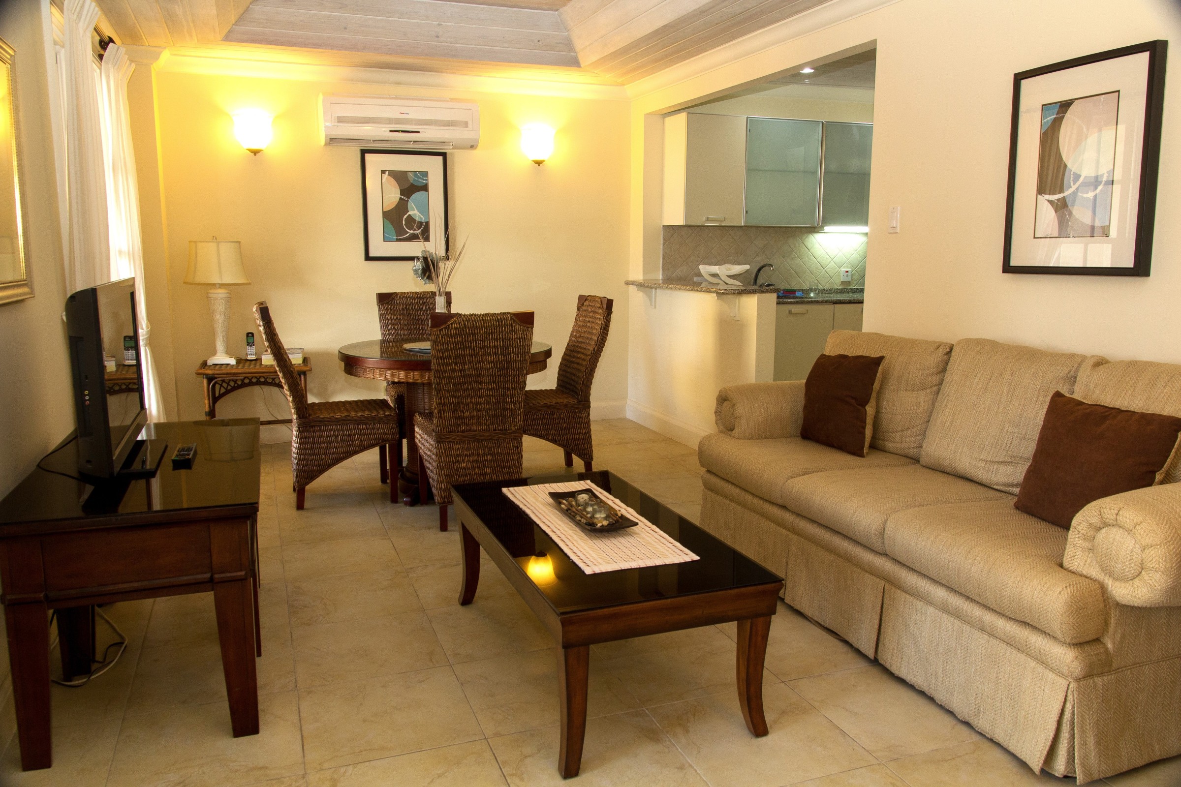 White Sands development consists of twenty-two 1, 2 and 3 bedroom condos. Nestled right on one of Barbados’ most spectacular white sandy beaches, it offers easy access to dining, shopping and entertainment just a stroll away. This lovely unit is on the 2nd floor – East. Despite being a One Bedroom, it has 2 full bathrooms. The finishes are superb and give a truly luxurious experience. One can enjoy the large terrace with ceiling fan and partial ocean views. It offers a fully equipped kitchen with granite countertops and stainless steel appliances, air conditioning throughout and cedar French doors. One parking space comes with the unit.
