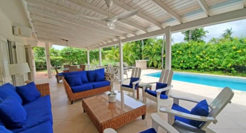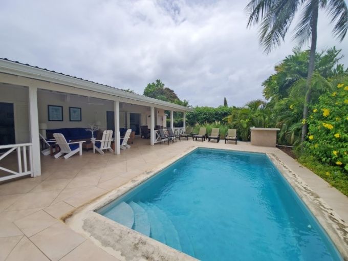 A large 3 Bedroom, 3 Bathroom villa with a private pool located in the popular Sunset Crest area, Holetown, St. JamesThere is a large open plan TV/Living, dining and kitchen space, which branch off to each of the three bedrooms, all modern en-suite with standup showers. All bedrooms have air conditioning. There is a laundry room with drying yard and BBQ in the backThe true magic of this beautiful property is the large covered patio and private pool, with wet bar, outside dining and lounge space.A great space for your next holiday!
