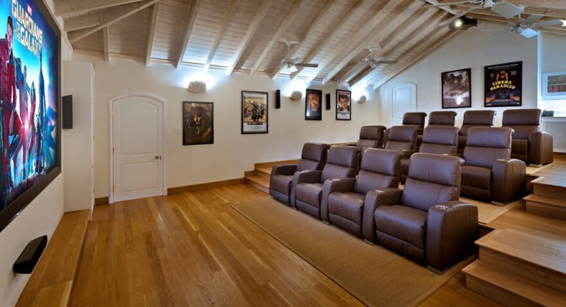 | Cove Beach: a delightful spot to sunbathe and enjoy water sports. Crystal Springs is one of the few private homes in Barbados with a cordoned-off swimming area, making it safe to enjoy the beautiful azure waters.Boating & Watersports: includes an 18’ speedboat equipped for waterskiing, wakeboarding, tubing and other aquatic excursions; the boat master can also arrange diving lessons and equipment rentals. Two stand up paddleboards, a Sunfish sailboat and snorkel equipment are also available.Swimming Pool: a heated (84°F / 29°C) 50x20 ft infinity swimming pool, finished in a stunning blue Bisazza mosaic tile imported from Italy. Lined with inviting chaise lounges, it’s an ideal spot to relax in the shade with a cool drink in hand, or accept the water’s invitation to take a dip beneath the midday sun. Fouta towels are located in baskets throughout the property; please feel free to use them at both the pool and beach. This villa DOES NOT permit the use of Riemann P20 Sunscreen, as it damages towels and fabrics. | Gully: a natural gully on the property has been transformed into a serene garden space filled with verdant tropical foliage. Opening on to the beach, its oceanfront terrace offers an ideal setting for meditation or yoga.Cinema: a state-of-the-art home theatre with leather reclined seating for 12 and 150+ film library; can connect to Apple TV and Netflix accounts to stream on the big screen.Fitness Centre: outfitted with Technogym equipment, the ultramodern fitness centre is accessible 24 hours a day. Stocked with water and towels, it features a flat screen television as well as iPad holders on the Technogym equipment for your personal fitness soundtrack.Experiences: indulge in private yoga or meditation sessions, spa services and more offered by highly trained professionals within the comfort of the Crystal Springs property. We can arrange any of these services on your request.**Additional fees apply for these services. |
