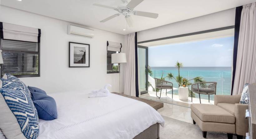 Three of the six air-conditioned, ensuite bedrooms feature direct ocean views and private balconies overlooking the sea—an indulgence rarely found even among the island’s most exclusive beachfront properties. Inside, sleek designer furnishings, smart home technology, and premium entertainment systems provide effortless modern luxury, all set against the tranquil rhythm of the waves.