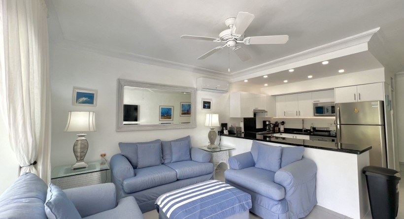 Glitter Bay 107 is a two bedroom apartment located on the ground floor in the second block of the property affording beautiful pool and garden views and sleeps 5 with the existing bedding. GB107 can be rented as a one bedroom deluxe except at Xmas/New Year.