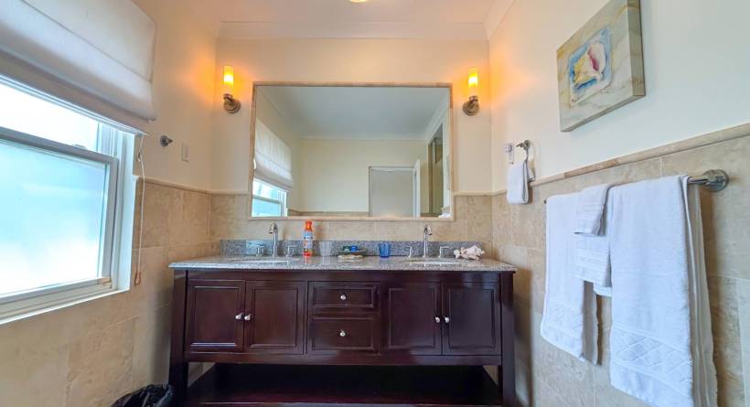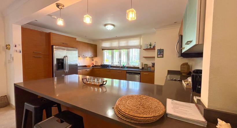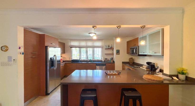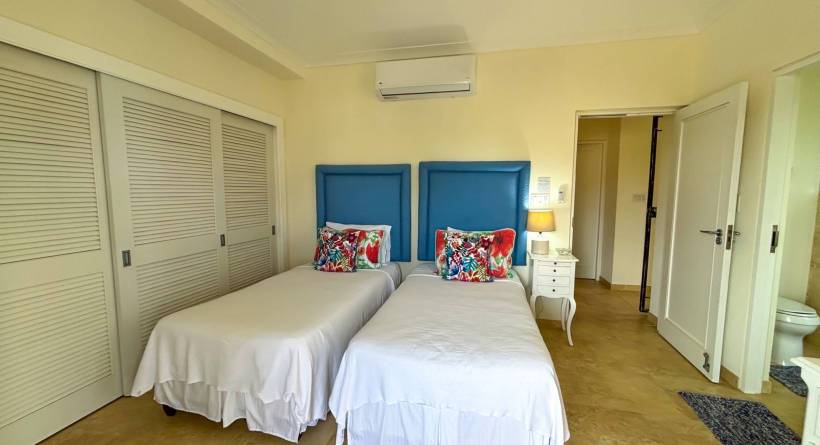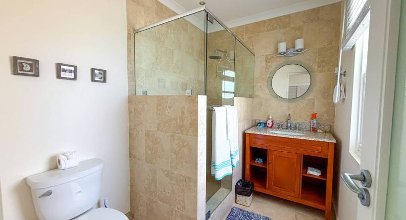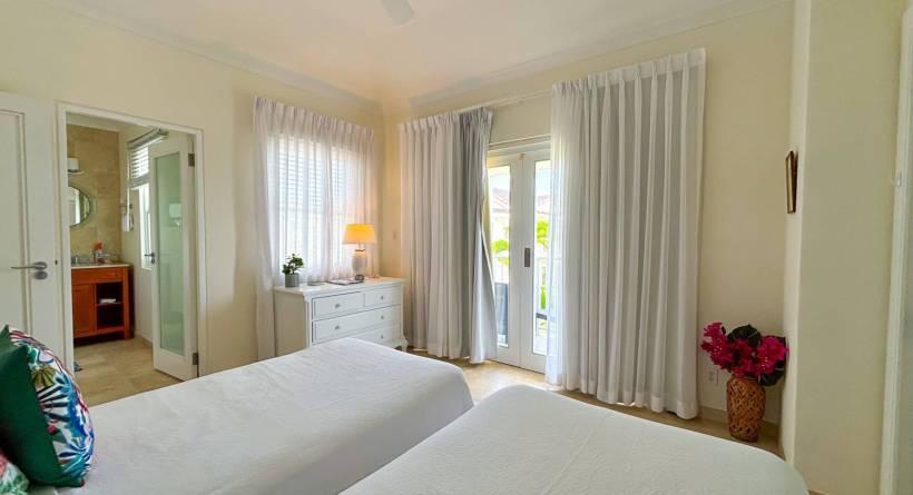 Experience the ultimate short-term getaway at Palisades 8B, a chic 3-bedroom, 3.5-bathroom townhome nestled in an exclusive private community near Miami Beach and Freights Bay, two of Barbados' sought-after destinations. This gated haven features only 16 sophisticated residences, each offering cleverly designed spaces, stylish interiors, and a refreshing plunge pool on the private patio. The upstairs master suite boasts an opulent bathroom, walk-in wardrobe, and a private verandah for moments of serenity. The two additional bedrooms, each with its own en suite, come complete with private balconies or patios, ensuring your guests enjoy their own secluded retreats.