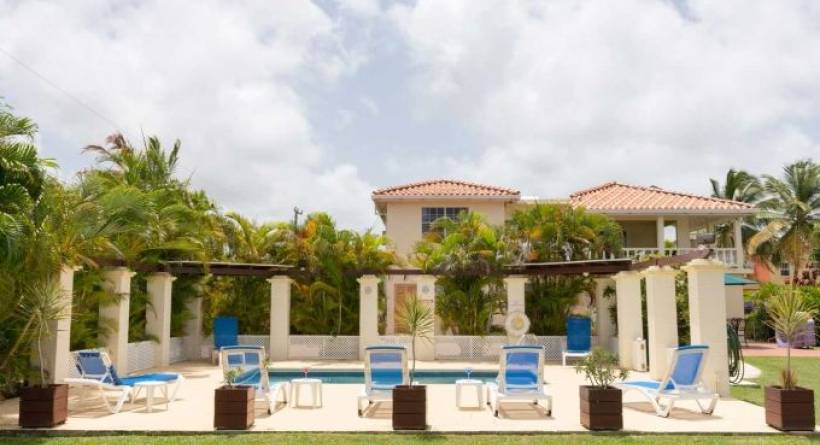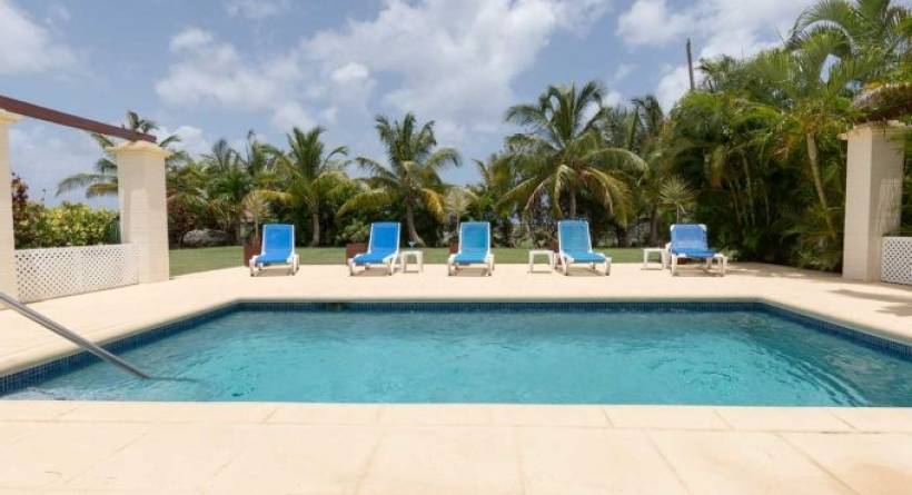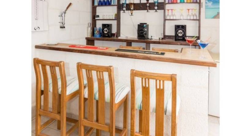 Situated in an elevated and peaceful location at Maynard's, St Peter, Palm Villa is a spacious five bedroom, five bathroom, two storey property with gardens that extend to one third of an acre.The extensive grounds include an 18' x 12' rectangular pool surrounded by a spacious terrace ideal for sunbathing. The pool area is equipped with sun loungers, table and chairs and pool shower. The large garden has been landscaped to ensure an excellent level of privacy, and for those who like to enjoy a 'tipple or two', our villa has a garden bar room where you can also enjoy a selection of games. We have recently built a Petanque court in the garden which is also floodlit. To complete your Barbadian experience a BBQ is provided.