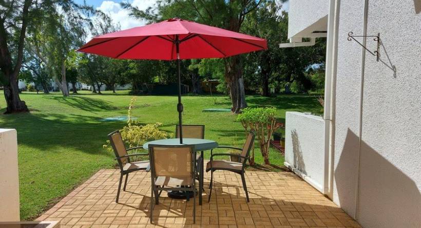 This ground floor apartment has been completely renovated and is presented to a very high standard. There is a king bed, modern bathroom with a walk-in shower, a fully equipped kitchenette with granite counter tops, combination microwave/convection oven and stove top with 2 burners. There is an extended patio with dining table and chairs as well as an umbrella and offers views of the golf course. The property benefits from Wi-Fi, telephone, cable TV, safe, hair dryer, ironing facilities and ample cupboard space.
