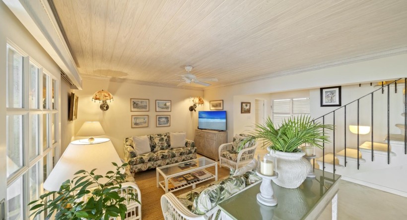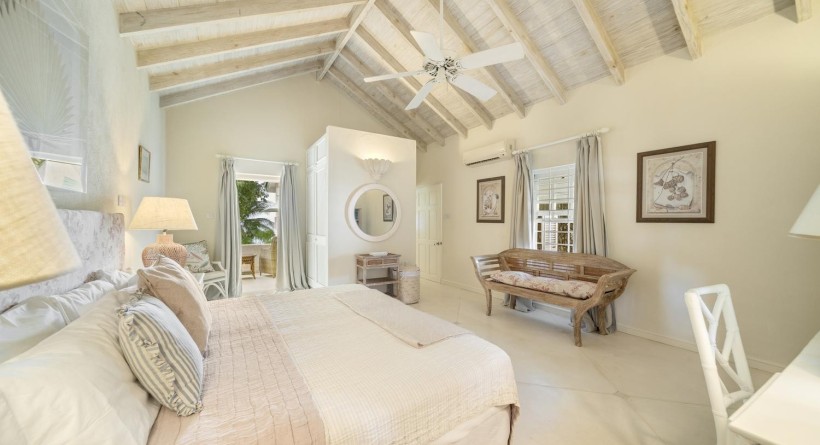 Seascape is thoughtfully designed to accommodate various guest needs, with three of the four bedrooms located on the villa's first floor, while one bedroom is conveniently situated on the ground floor, complete with a shower, catering to guests with mobility concerns. The villa features two cozy seating areas, an expansive dining room perfect for family gatherings, and a stunning terrace that opens directly onto the pristine sands of Gibbes Beach.