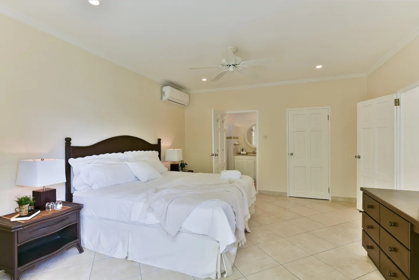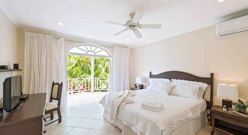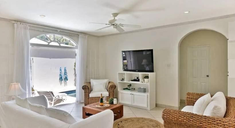 Our breezy villa is a stroll away from our bonus Beach Club membership and the lively shops, restaurants and bars of Holetown. Our full kitchen and nearby supermarket make it easy to whip up meals. The private deck is ideal for morning coffees and family dinners. The plunge pool and courtyard are perfect for morning dips. Nestled on a tropical cul-de-sac, this villa offers a safe and quiet proximity to all of the action in Holetown. Read on... The space Our villa comes with a bonus Beach Club Membership located next to the Beach House Grill. This gives our guests access to a beautiful ocean-front pool with loungers and restaurant and bar service. The villa is furnished and well appointed with cooking essentials. It features a fresh and spacious kitchen and plunge pool for dips in between outings. A large private deck beside the kitchen offers lush views of palm trees and gardens, ideal for family meals. Every part of the villa is designed with guests in mind, including thoughtful amenities to enhance your experience such as fresh linen, towels and a starter supply of coffee, soap and paper products. The large master bedroom features a work desk and double French doors for a tropical breeze. Both bedrooms have air-conditioning for your sleeping comfort and ensuite bathrooms making it ideal for couples and families. Guest access Guests have exclusive access to the villa, courtyard and pool; as such, this villa is priced higher than the other villa (see our profile for that listing). The large driveway is shared with our two other villas and features ample parking at your door step. Other things to note Netflix High-Speed Wifi Bring your beach towels Coffee Maker, Kettle, Toaster ATM Machine, 200m Duty Free Shop, 200m Modern Supermarket, 1.4km 24hr Gas Station (Rubis), 1.4km Yoga Studio, 200m